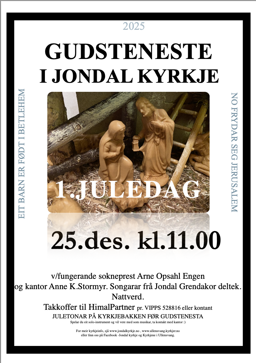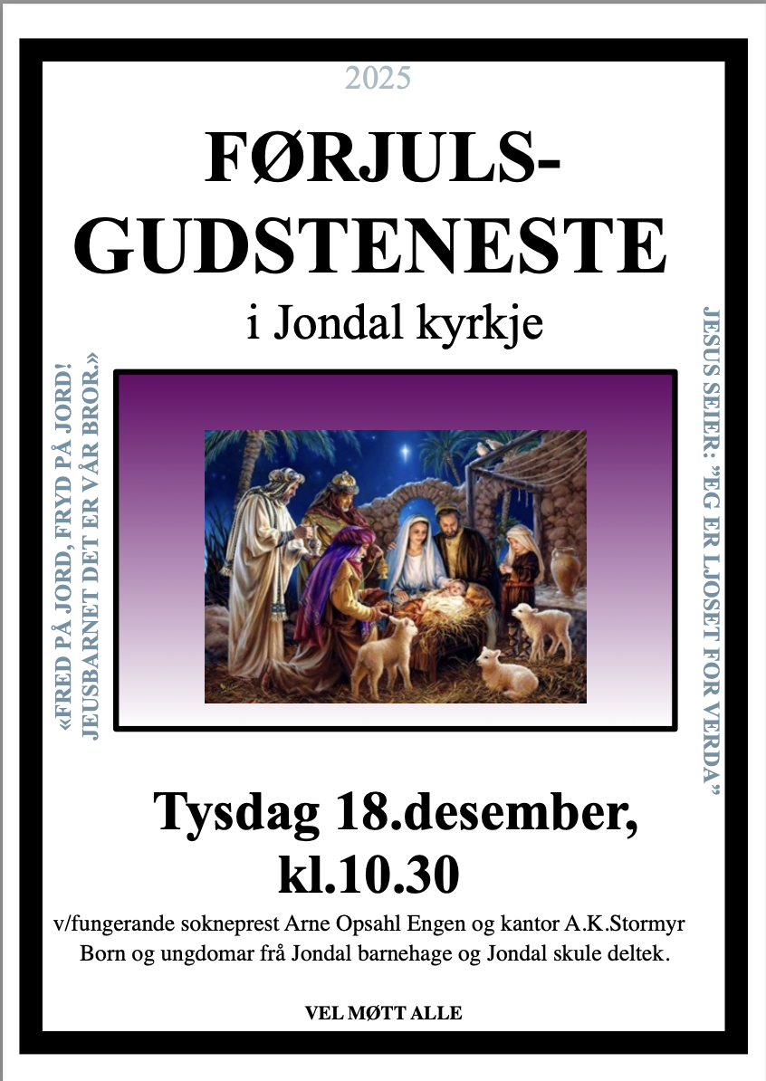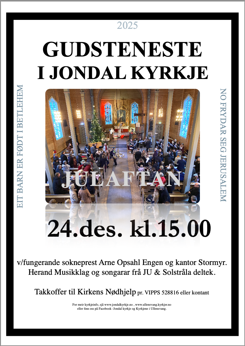 Nedanfor i denne artikkelen finn du plakatar om komande arrangement og gudstenester i Jondal sokn.